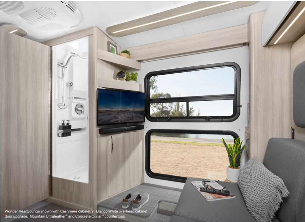 ♦ Above the slide-out pantry you can see a touch pad which controls the water pump and lights. In fact, download and use a mobile app to control the Wonder’s climate controls, lighting, and more.